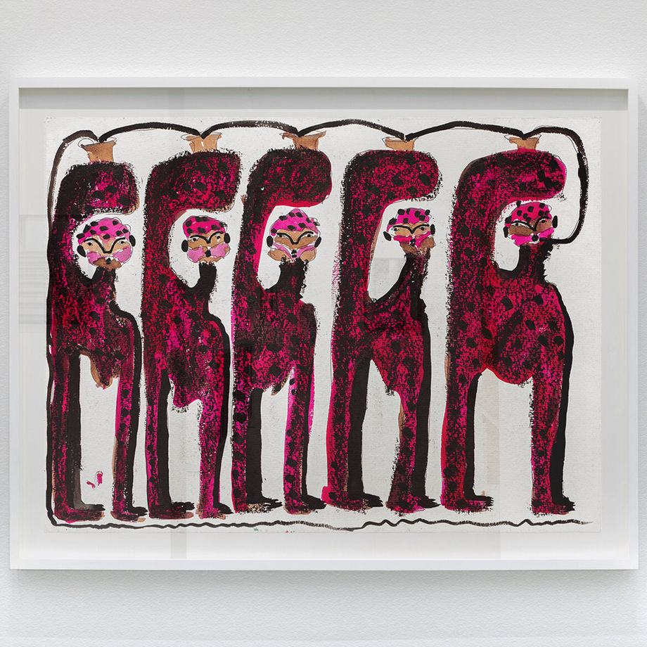 Ruti de Vries, Five Animals, 2021, pastel, ink, acrylic and watercolor on paper